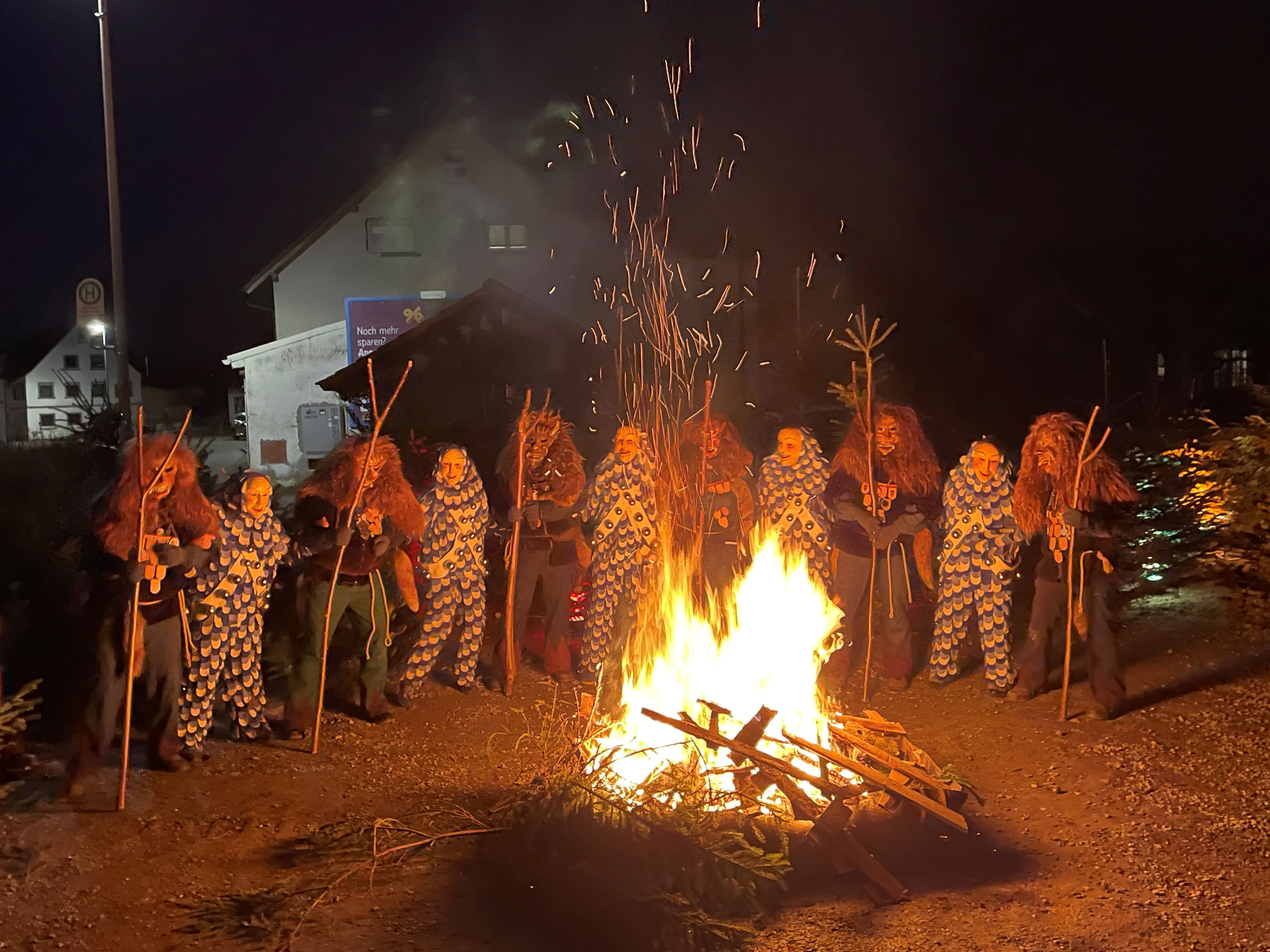 Jedes Jahr werden unsere Maskengruppen "Schindelbachgeist" und "Schussennarr" von der Leitmaske "Wunibold", die man an den Hörnern erkennt, durch das Maskenerwachen zum Leben erweckt.