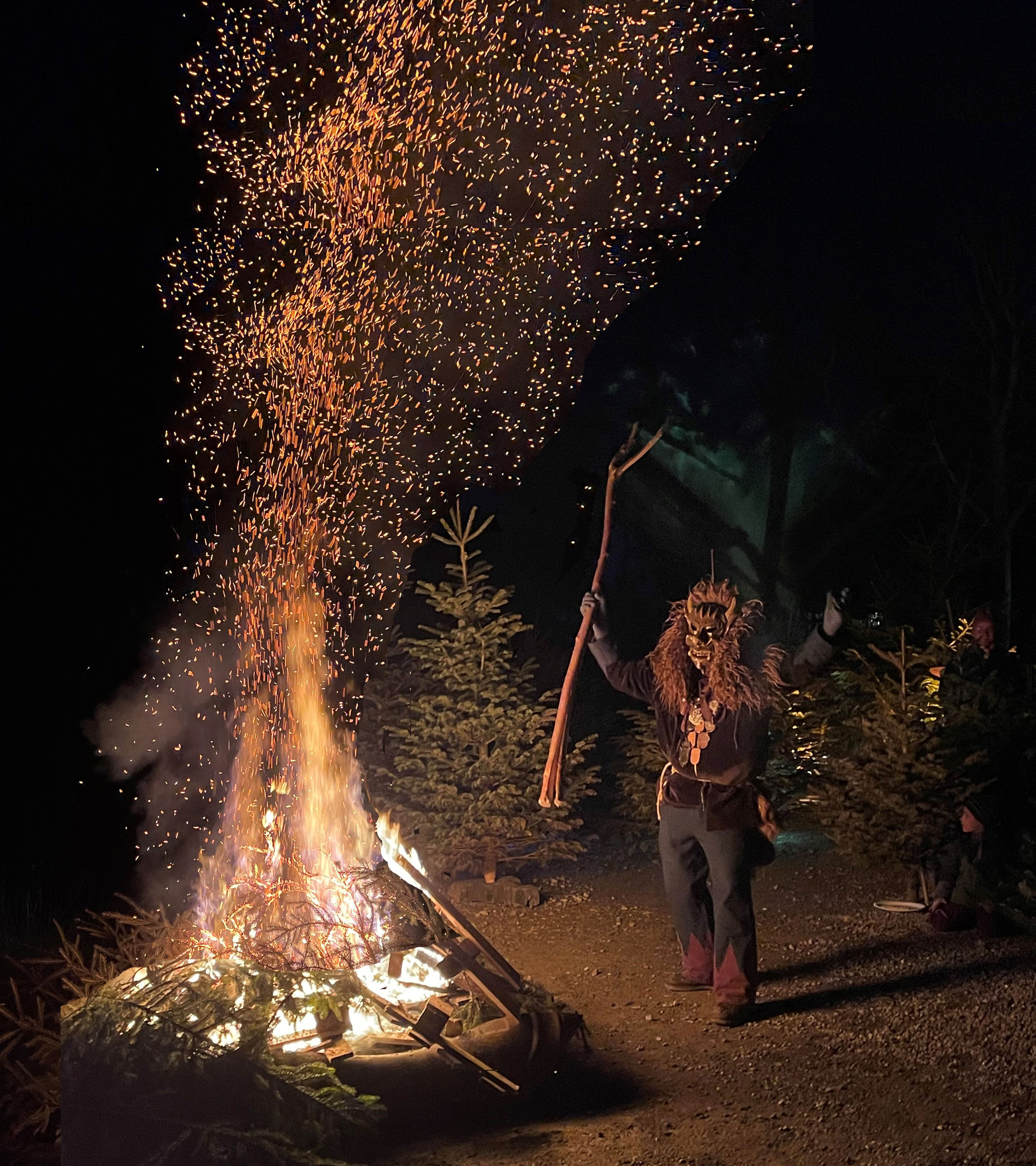 In Schach gehalten wird die wilde Gruppe von „Wunibold“, die Einzelmaske des Gruppenvogts, die als einzige über Hörner und über eine dunklere Farbgebung verfügt.